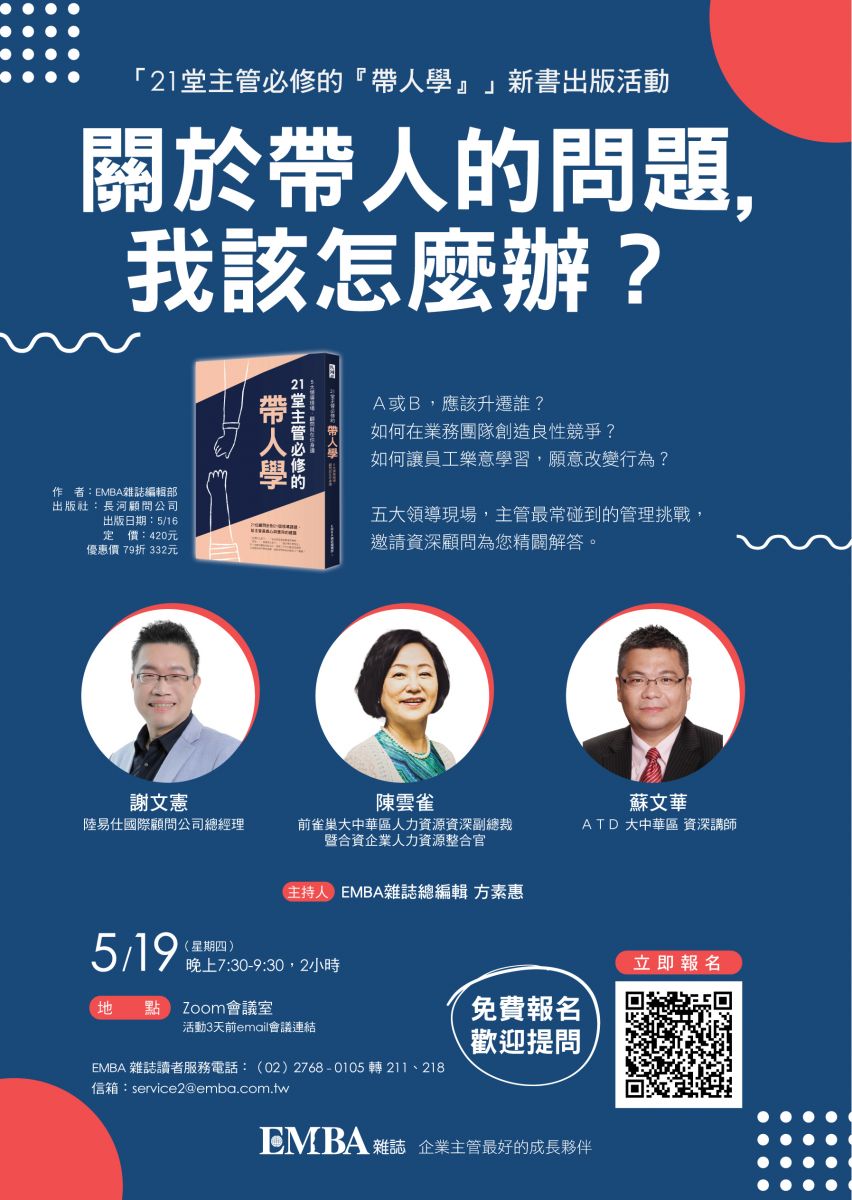 轉知《EMBA雜誌》5/19免費線上活動 :「帶人學」-關於人的問題,我該怎麼辦?